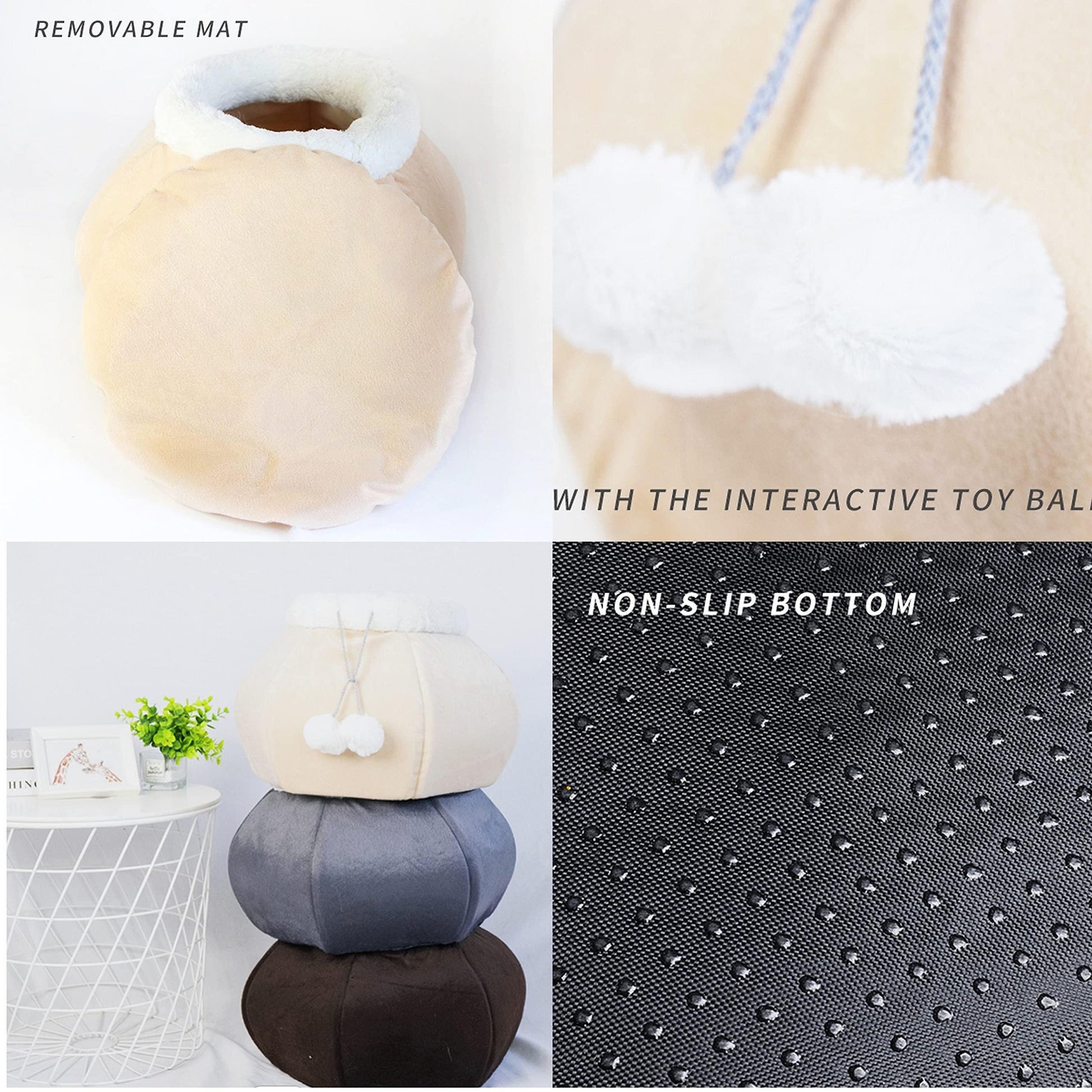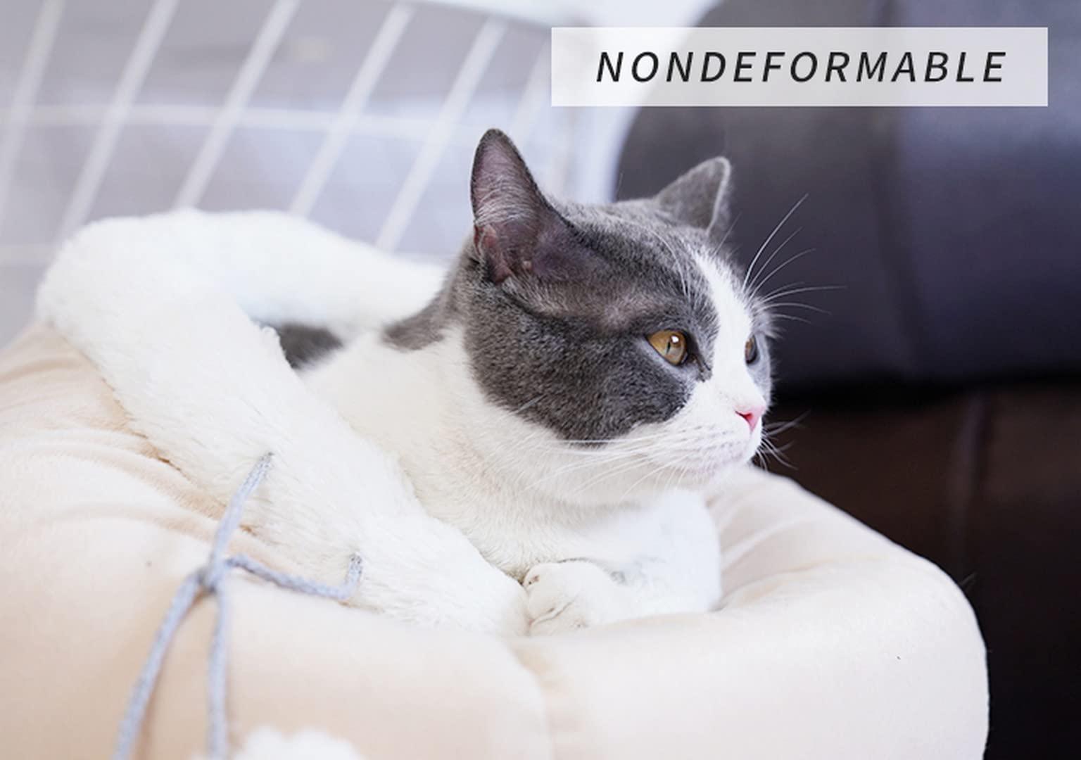 • 【DURABLE & WARM PLUSH】Pet bed is covered with furry super soft plush, resistant to damage such as bites and scratches. The insides feature PP cotton, which keeps heat inside the pet cave, providing privacy and calming effect. Bottom surface is non-slipping and waterproof, which allows your cat to carefree jump in and out.