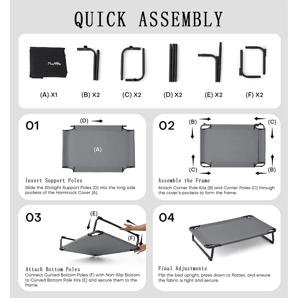 Extra Large Eco-Friendly Dog Bed Heavy-Duty Cooling Mesh Chew-Resistant Frame No-Slip Feet Indoor/Outdoor Pet Hammock Solid