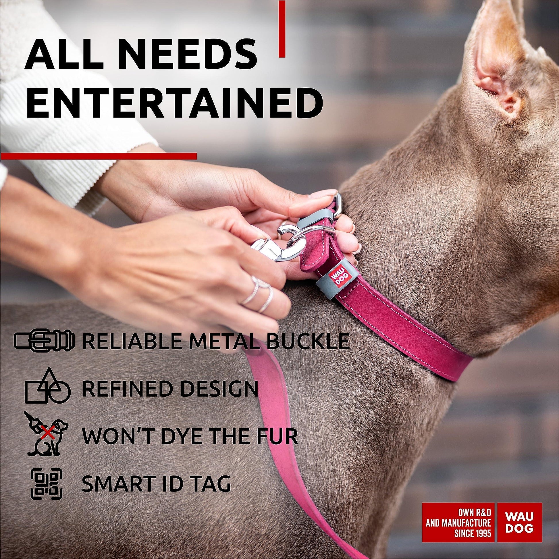 WAUDOG Long Lasting Leather Dog Collar for Large Dogs Medium & Small